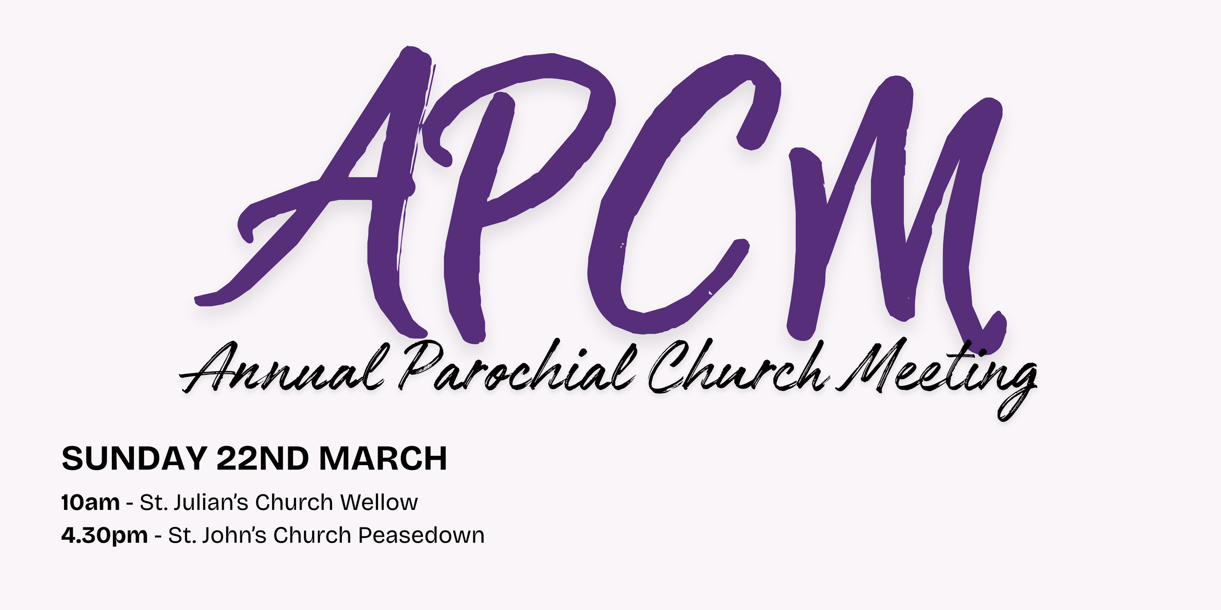 The annual meeting of the parishes of Peasedown and Foxcote with Shoscombe and Wellow is to receive reports on the life and work of the church, review finances, and elect church officers. All are welcome to attend. Members of the church electoral roll are entitled to vote and stand for PCC and Deanery Synod representatives; please see Rev’d Matthew Street for a nomination form.